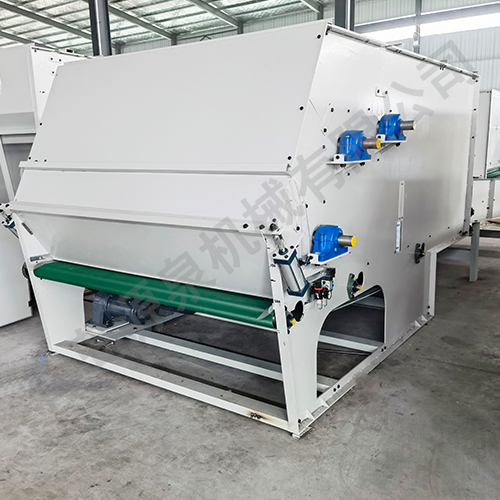 把各種捆包纖維、原料經(jīng)電子稱重后,喂入平簾輸送至主體混倉內(nèi),再由三道開松輥高速開松混合后,經(jīng)輸棉風(fēng)機(jī)以適量的風(fēng)量輸送纖維原料供后道工作使用。經(jīng)本機(jī)開松混合后的纖維、原料效果好,混合均勻,以備梳理使用。